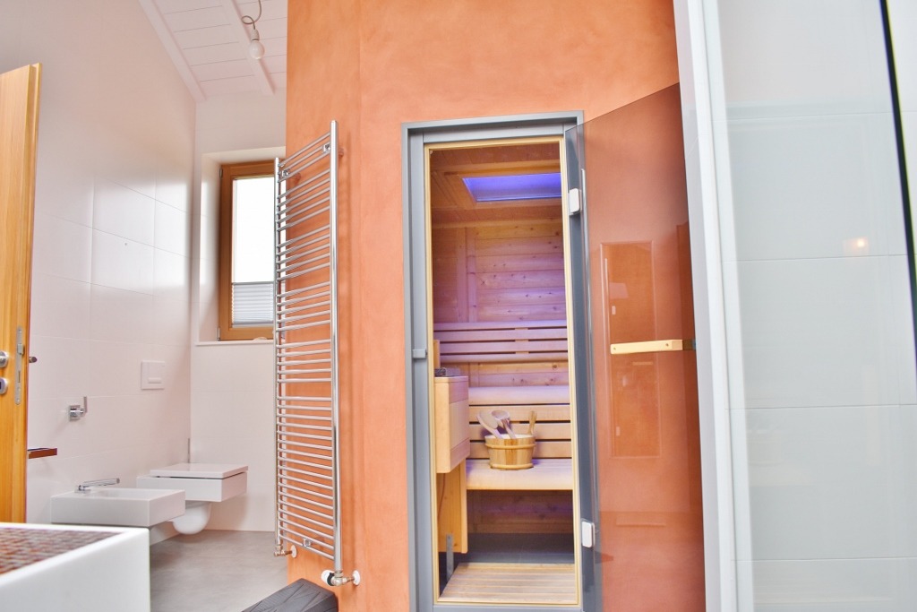 Sauna mit Wellnessbereich im DG; Garage, Carport und Außen-Stellplätze