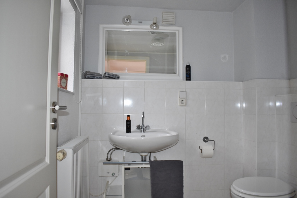 Die Dachgeschosswohnung mit ca. 60m² Wohnfläche hat aufgrund der beidseitigen Schleppdachgauben nur wenig Verlust durch Dachschräge. Sie wurde im Jahr 2007 zuletzt renoviert und hat einen eigenen Terrassenbereich. Sie bietet folgende Räumlichkeiten: Diele, Wohnzimmer, Wohnküche, Schlafzimmer, Duschbad, Büro mit Dachschräge und Terrassenausgang.
