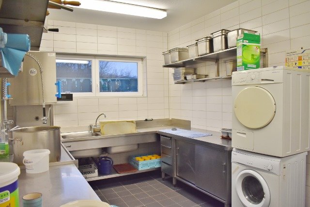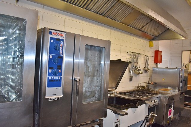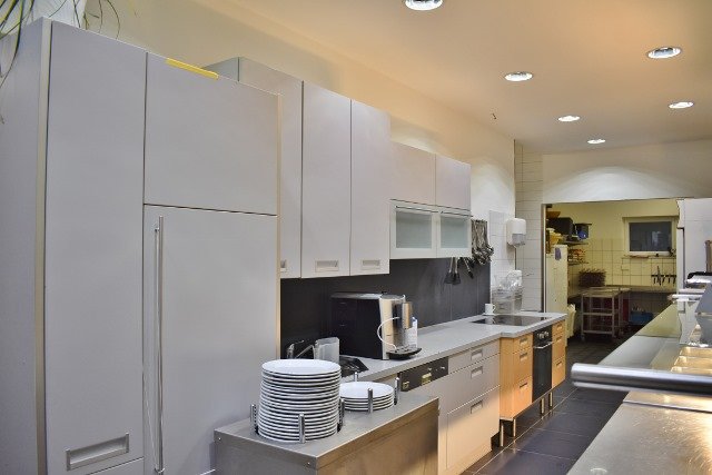 Hochwertige Küche mit kompletter Ausstattung, Kühlhaus, Salatbuffet, Kombidampfer, Gasherd etc.