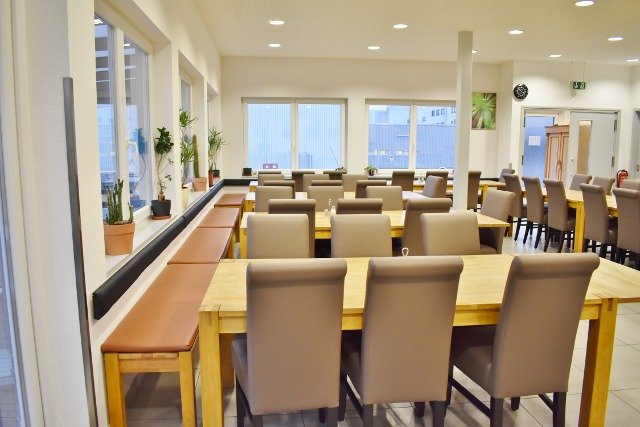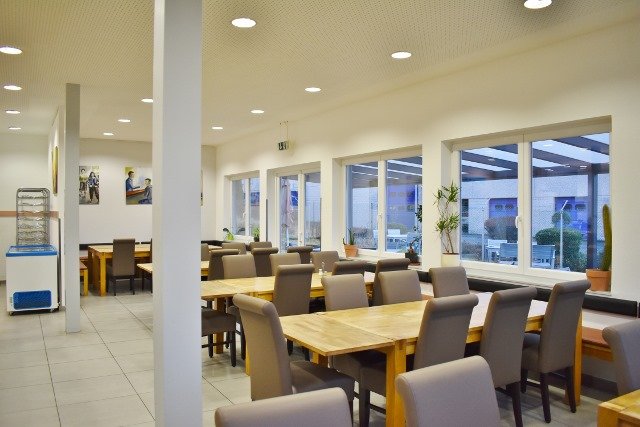 Komplett eingerichtete und geschmackvoll ausgestattetes Kantine-Restaurant in guter Lage in Luxemburg Echternach sucht neuen Eigentümer. Das Lokal liegt sehr gut in einem großen Industriegebiet und gilt als Insidertipp. Es ist die einzige freie Kantine in diesem Gebiet und so kommt es, dass sowohl Angestellte als auch die Chefs gerne hier einkehren und auch Geschäftsessen buchen. Die jetzigen Betreiber haben sich einen großen Kundenstamm aufgebaut. Sie beliefern Kunden vor Ort, bieten Partyservice und täglichen Brötchenlieferdienst an die Firmen vor Ort an. Natürlich werden auch Mittagstisch, Firmenessen oder Feiern angeboten. Das Lokal ist hochwertig und modern im Jahr 2011 in Fertigbauweise gebaut worden. Schnell stellte man fest, dass die Kunden in der Pause und bei schönem Wetter gerne draußen sitzen, und so wurde die Außenterrasse teilweise überdacht und mit Holzboden versehen. Über ca. 75 Sitzplätze innen und ca. 40 überdachte sowie beliebig weitere Außensitzplätze locken die hungrigen Kunden, darunter auch viele Kunden aus der Umgebung an. In der belebten Lage sind große Firmen angesiedelt sowie auch sehr viele Anwohner, die zu den Stammkunden zählen. Es kann das bisherige Konzept übernommen werden, aber auch jedes andere ist realisierbar.