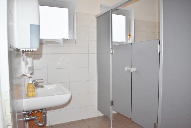 Damen-WC, Herren-WC, 2 Personal-WC, Abstellraum, Lagerfläche, Spülküche, Büro