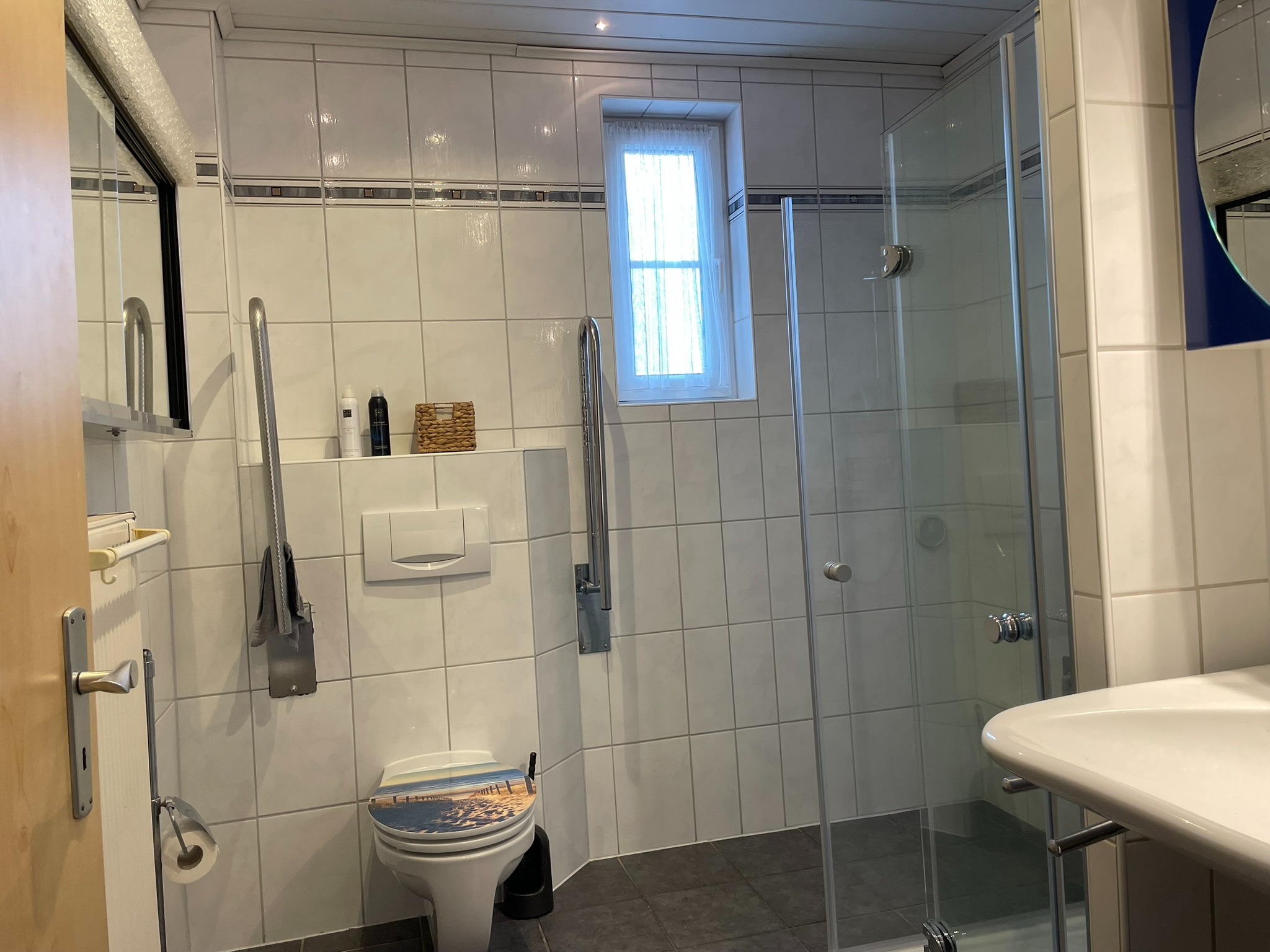- Ausstattung des Bades Dusche Fenster