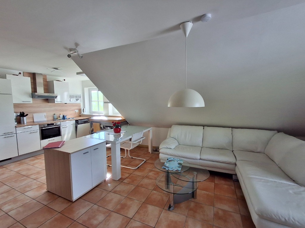 • Dachgeschoss: zwei gemütliche Wohnungen (linke Wohnung ca. 46 m² mit zwei Schlafzimmer, Duschbad und offenem Wohn-Küchenbereich; rechte Wohnung ca. 43m² mit Schlafzimmer, Duschbad, Wohn- Küchenbereich und Loggia).